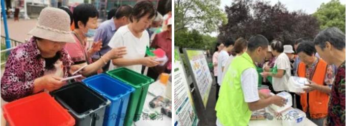 活動現(xiàn)場設置宣傳展板、講解臺,志愿者發(fā)放環(huán)保宣傳頁、環(huán)保購物袋、環(huán)保圍裙等,向群眾講解生態(tài)環(huán)境保護、生活垃圾分類、綠色低碳生活等知識。同時,現(xiàn)場開展了垃圾分類投放活動,投放正確的可獲得環(huán)保餐盒、環(huán)保垃圾桶等獎品。