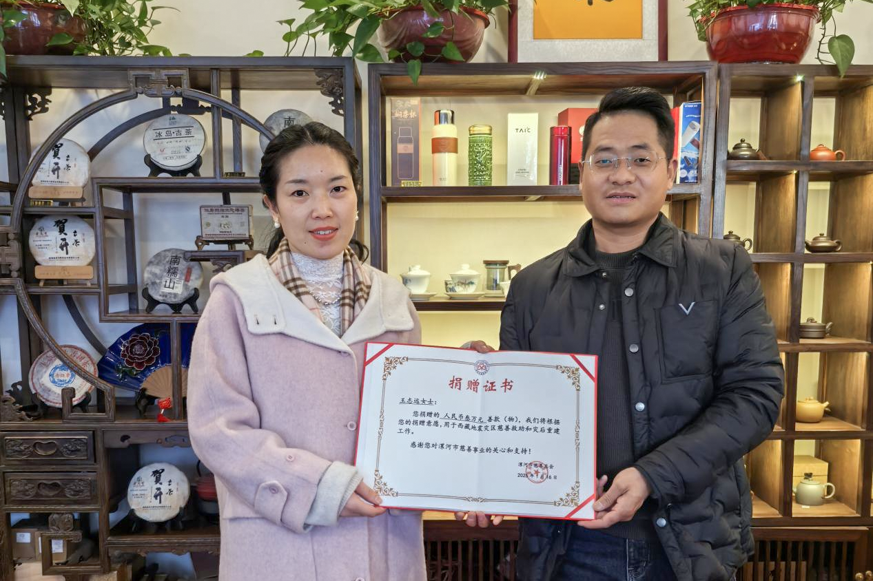1月23日,漯河市源匯區(qū)梁棟威、梁思雅兄妹在監(jiān)護(hù)人和星火志愿團(tuán)志愿者陪同下,來(lái)到市慈善總會(huì),將平時(shí)積攢的壓歲錢1萬(wàn)元捐獻(xiàn)給市慈善總會(huì),用于支援西藏定日縣地震災(zāi)區(qū)藏族同胞的災(zāi)后重建和生產(chǎn)生活。