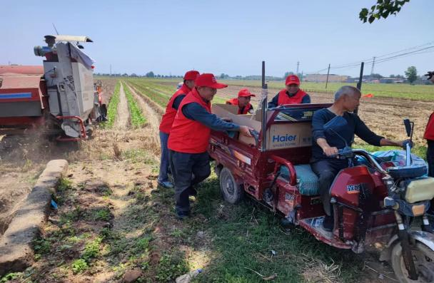 2025年5月21日,支部書記宋俊凱帶領(lǐng)網(wǎng)格長潘超文、網(wǎng)格員宋孟炎、宋書許、宋連三幫助村民潘現(xiàn)吾、宋彥超收割小麥搶收糧食。