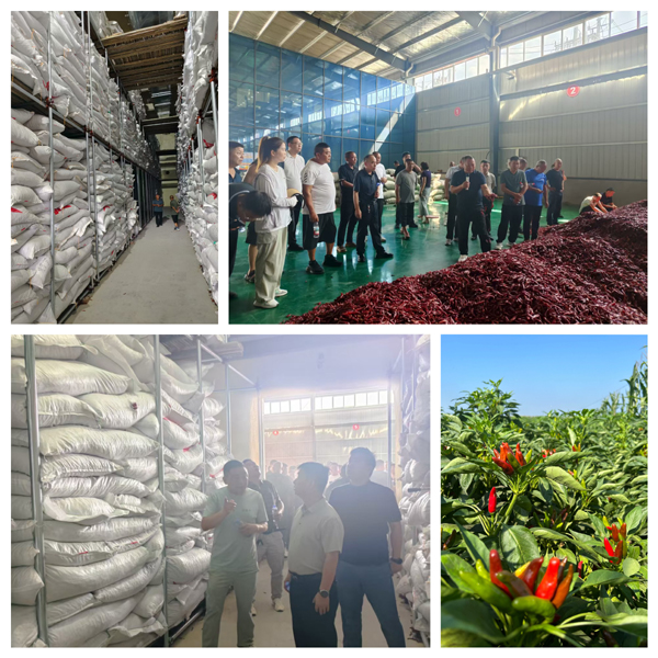 第一站實地參觀“子彈頭”、“三櫻椒”品種辣椒的生長情況,學(xué)習(xí)“麥椒套種”種植技巧,詢問專家種植模式、病蟲害防治和畝產(chǎn)情況。王崗鎮(zhèn)技術(shù)人員毫無保留地分享了田間管理的關(guān)鍵細(xì)節(jié)與多年積累的實用經(jīng)驗,通過細(xì)致觀摩和現(xiàn)場講解,系統(tǒng)了解了這一高效種植模式的核心環(huán)節(jié)——從精準(zhǔn)選種、科學(xué)播種、病蟲防治到高效收獲、專業(yè)存儲及暢通銷售的全鏈條操作流程。第二站實地參觀了王崗鎮(zhèn)辣椒儲存專用冷庫,通過查看冷庫建設(shè)分區(qū)和分揀情況,詳細(xì)了解辣椒打包存儲技巧和市場托管銷售等關(guān)鍵環(huán)節(jié),為種植大戶安心發(fā)展種植注入“強(qiáng)心劑”。