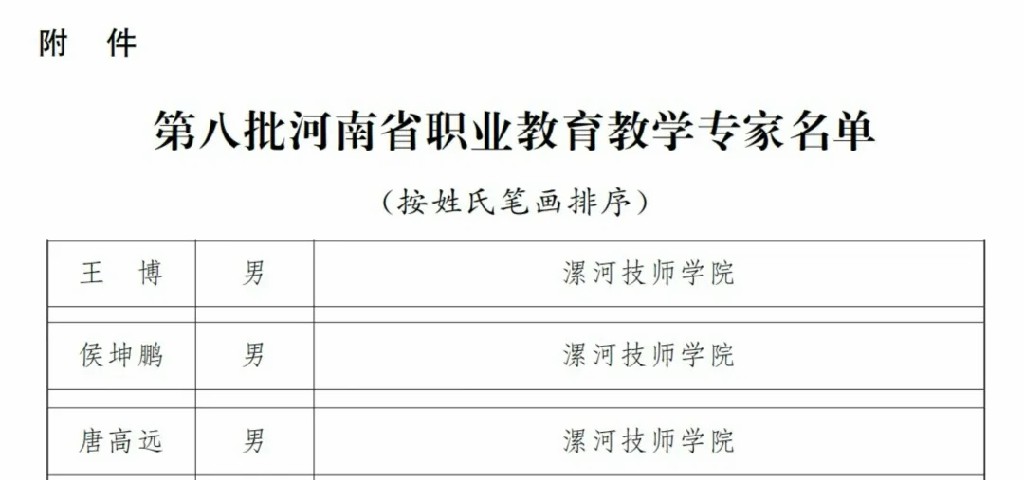 近日,河南省人民政府辦公廳發(fā)布《河南省人民政府辦公廳關(guān)于公布第八批河南省職業(yè)教育教學(xué)專家名單的通知》。其中,漯河的王博、侯坤鵬、唐高遠(yuǎn)3名同志獲評第八屆河南省職業(yè)教育教學(xué)專家,他們均來自漯河技師學(xué)院。