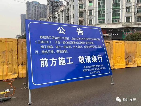 4月7日上午,源匯區(qū)公路養(yǎng)護(hù)中心正式對(duì)五一路(湘江路至柳江路段)進(jìn)行道路提升改造,實(shí)行全封閉斷行,施工期間,禁止一切車輛及行人通行。