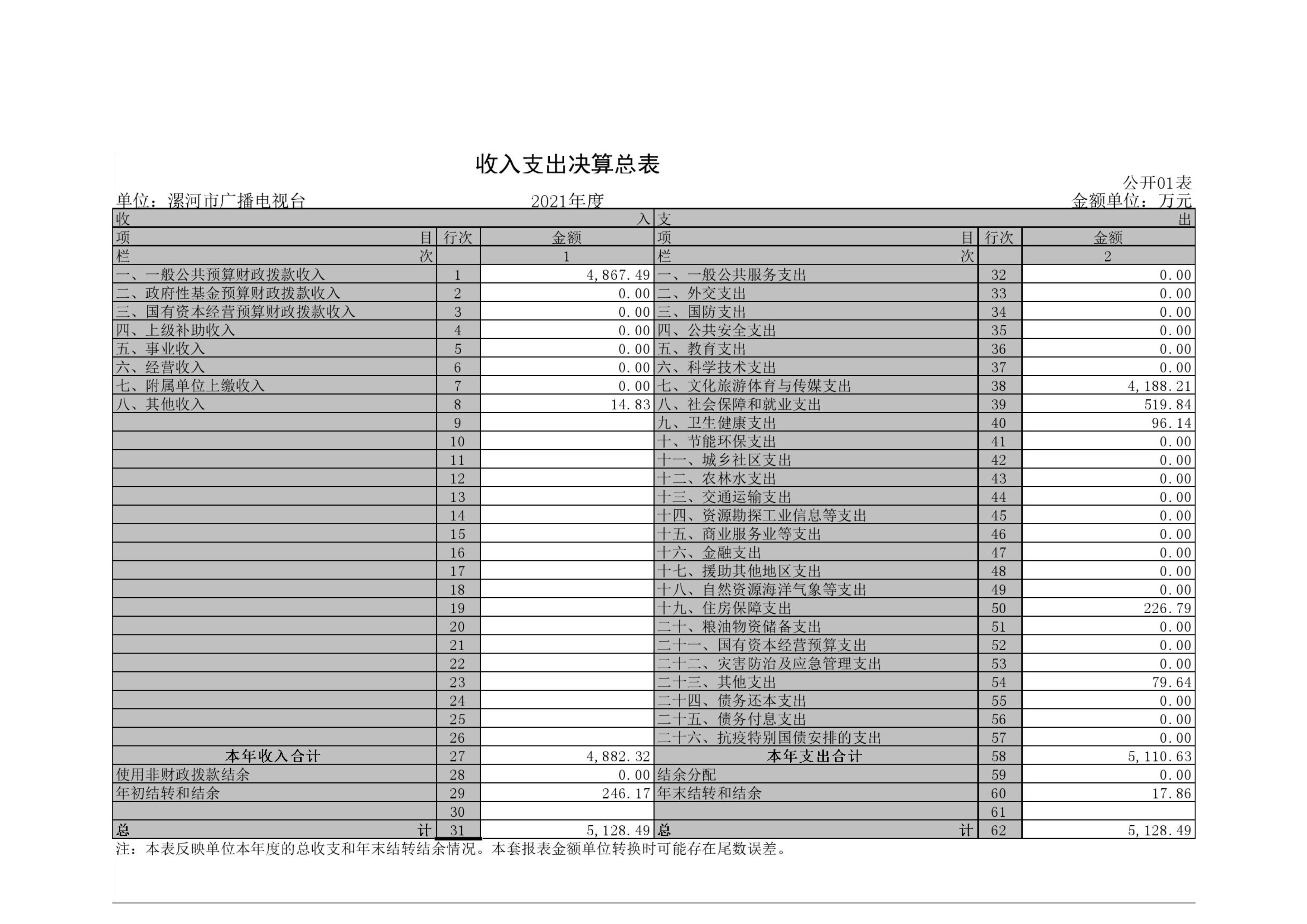 2021年度漯河市廣播電視臺單位決算