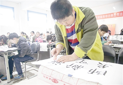 比賽評(píng)委、市書(shū)法家協(xié)會(huì)副主席劉穎峰說(shuō),通過(guò)觀看選手們的作品,發(fā)現(xiàn)其中有些學(xué)生很有天賦。書(shū)法進(jìn)入課堂后,對(duì)提高中小學(xué)生的書(shū)寫(xiě)水平,普及傳統(tǒng)文化都有好處。(楊 光)