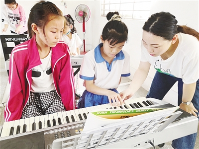 志愿者指導(dǎo)學(xué)生練習(xí)指法。