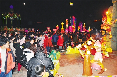 正月十五日晚上,夜幕降臨后,家家戶戶大門口、街頭巷尾、樹梢、河岸、池塘邊,都掛上或擺放各式各樣的花燈,處處燈火通明,五光十色,美不勝收。孩子們提著燈籠走在街上,歡聲笑語傳遍千家萬戶。
