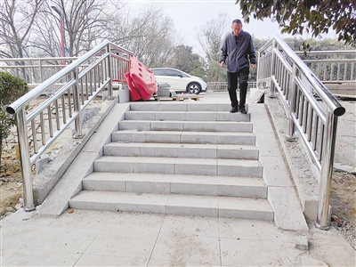 看到工人正在忙碌,一名經(jīng)過的市民說:“我經(jīng)常從橋南頭來這兒的松樹林和朋友一起健身。之前橋上只有往東的出口,開口很小,臺(tái)階上又有欄桿,人和自行車不容易通過。現(xiàn)在拓寬后,走起來就順暢多了!”
