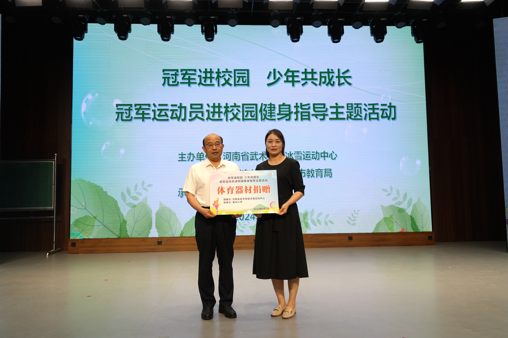 活動現(xiàn)場,河南省武術(shù)體操冰雪運動中心及漯河市體育局向?qū)W校贈送了籃球,以此表達對學校體育工作的支持和關(guān)心。隨后,孔洪星、申國順兩位冠軍在熱烈的掌聲和歡呼聲中走上舞臺,他們深情回顧了自己在武術(shù)散打道路上的奮斗歷程,分享了那些充滿挑戰(zhàn)和汗水的故事。這些真實而感人的經(jīng)歷深深觸動了在場的每一位師生,讓大家更加深刻地理解了冠軍榮耀背后的艱辛付出和頑強拼搏的精神。