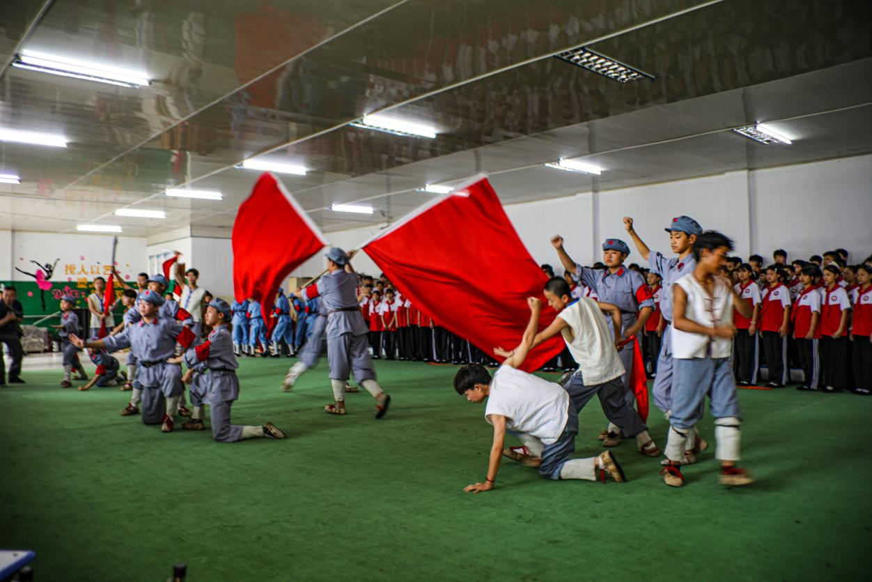 鏡頭轉(zhuǎn)向熱火朝天的“七一”節(jié)目排練現(xiàn)場。《紅燈記》中“鐵梅”的堅(jiān)毅,《紅色娘子軍》的颯爽英姿,《焦裕祿》的深情感人……小演員們雖臉龐稚嫩,唱念做打卻已頗具風(fēng)骨。排練廳回蕩著豫劇的鏗鏘韻律,攝影家們的鏡頭在光影流轉(zhuǎn)間,定格下傳統(tǒng)藝術(shù)在年輕一代身上煥發(fā)的勃勃生機(jī)。這些由孩子們傾情演繹的紅色經(jīng)典與優(yōu)秀傳統(tǒng)劇目,正是這所非遺傳習(xí)所教學(xué)成果的生動注腳——建校以來,五次晉京獻(xiàn)禮中南海,多次參加央視及省臺春晚,先后榮獲中國“小梅花”金獎56枚,河南省“小梅花”金獎83枚、銀獎31枚,累累碩果印證著薪火相傳的力量。