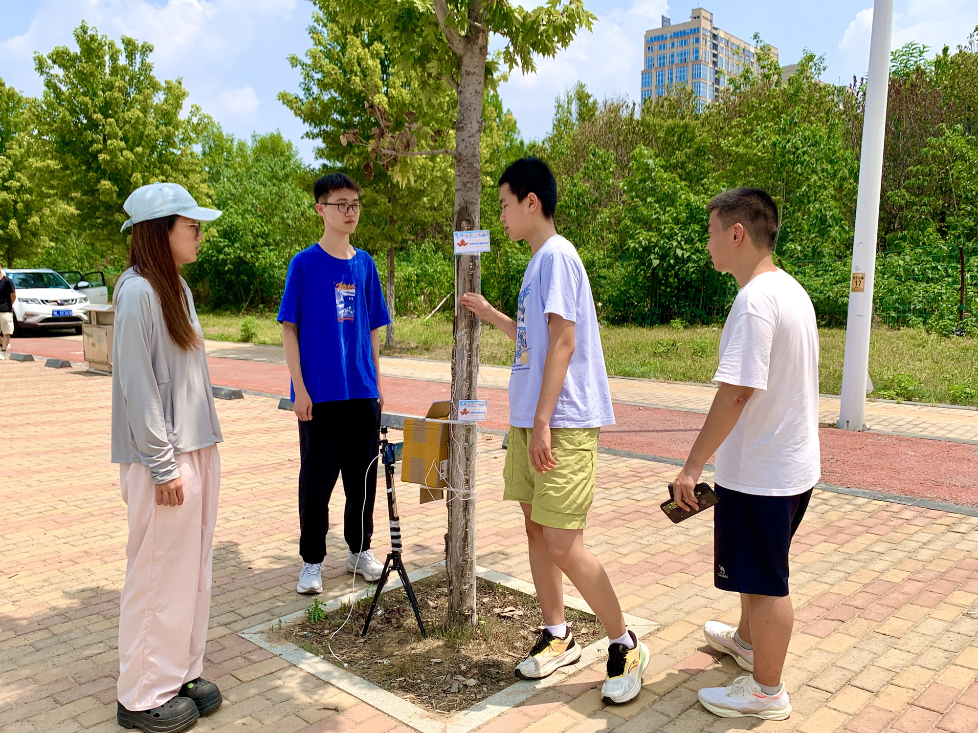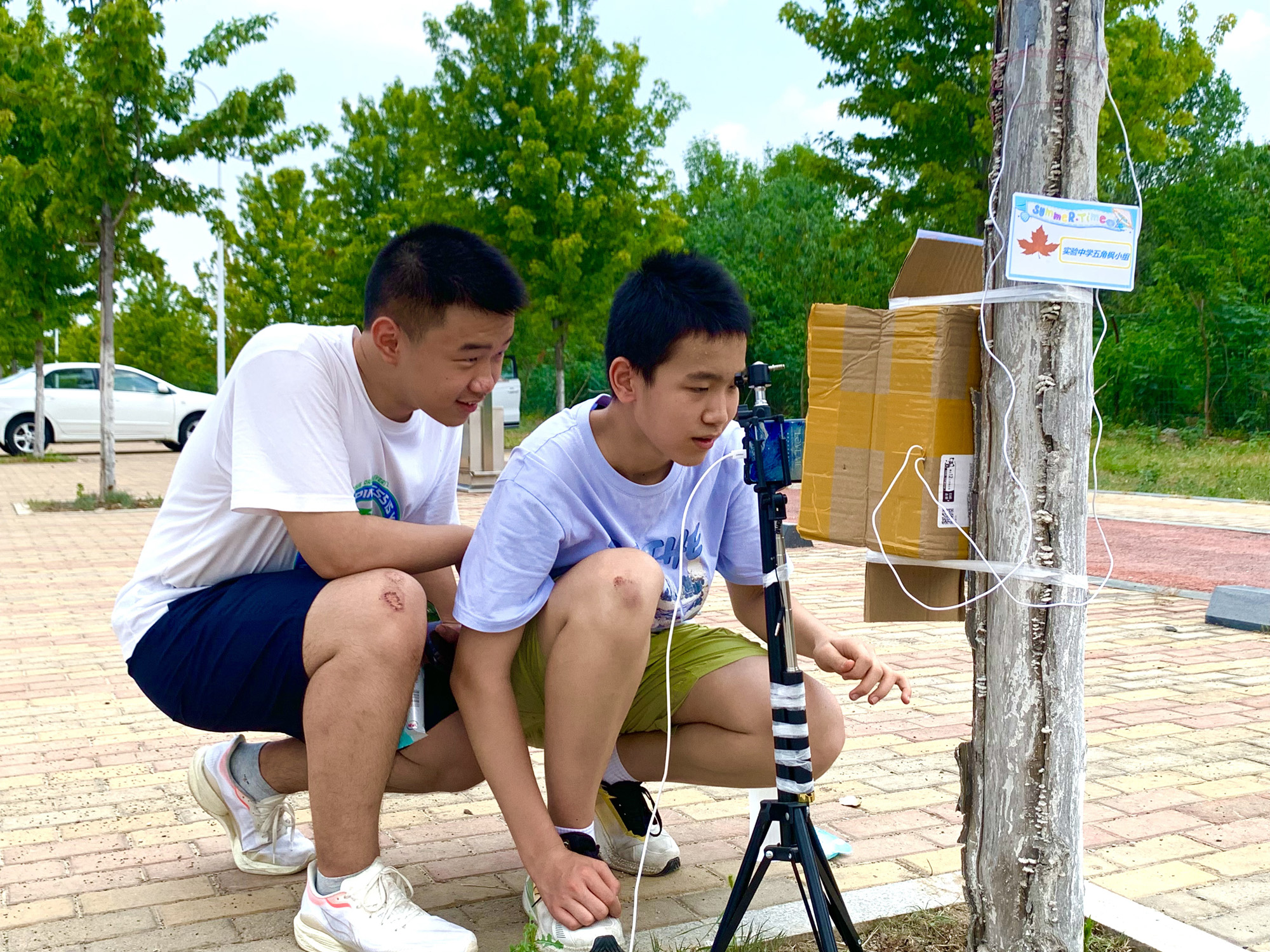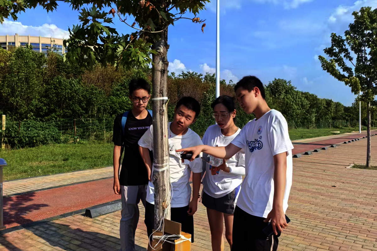 7月18日午時(shí),西城凌云山路,40℃的高溫炙烤著大地。在炎炎烈日下,兩個(gè)稚嫩的少年正蹲在一棵小樹前,手里拿著儀器,專注地觀察著什么。刺眼而毒辣的陽(yáng)光灑在他們的身上,他們卻仿佛感覺不到炎熱與不適。