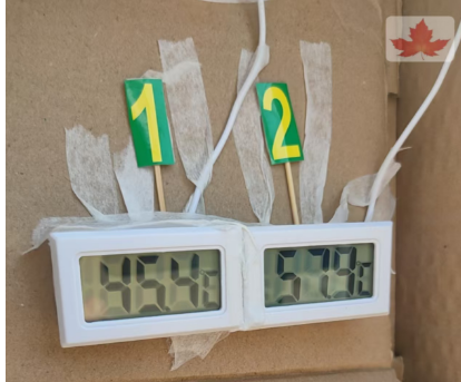 夏浩桐同學(xué)告訴記者:“去年秋天,我們觀賞紅楓葉時(shí),偶然發(fā)現(xiàn)路兩側(cè)的五角楓樹干出現(xiàn)了蛻皮壞死現(xiàn)象。寒假期間,我們又對(duì)整條路的五角楓進(jìn)行了全面觀察和統(tǒng)計(jì),發(fā)現(xiàn)壞死率竟然超過了65%。于是,我們就這個(gè)現(xiàn)象與學(xué)校張真老師進(jìn)行了討論。張老師非常支持,很快便成立了由她和我們四位學(xué)生組成的‘五角楓實(shí)驗(yàn)小組’。”“我們小組多次實(shí)地調(diào)查、現(xiàn)場(chǎng)測(cè)試后發(fā)現(xiàn),在夏季太陽(yáng)直射下,五角楓樹皮西側(cè)和南側(cè)的溫度差異巨大。比如現(xiàn)在下午3點(diǎn),我們測(cè)得南側(cè)(1號(hào)線)電子測(cè)溫計(jì)顯示45.4℃,而西側(cè)(2號(hào)線)測(cè)溫計(jì)則顯示高達(dá)57.9℃,兩側(cè)溫差達(dá)到了12.5℃。”夏浩桐繼續(xù)說道,“我們小組經(jīng)過多次測(cè)試、記錄數(shù)據(jù),并查閱了大量資料,還借助了‘豆包’等AI工具進(jìn)行分析,最終發(fā)現(xiàn)了一些資料提到了‘日灼病’,即因太陽(yáng)輻射溫度過高而導(dǎo)致的植物曬傷。我們認(rèn)為,這里的五角楓很可能就是患上了日灼病。”