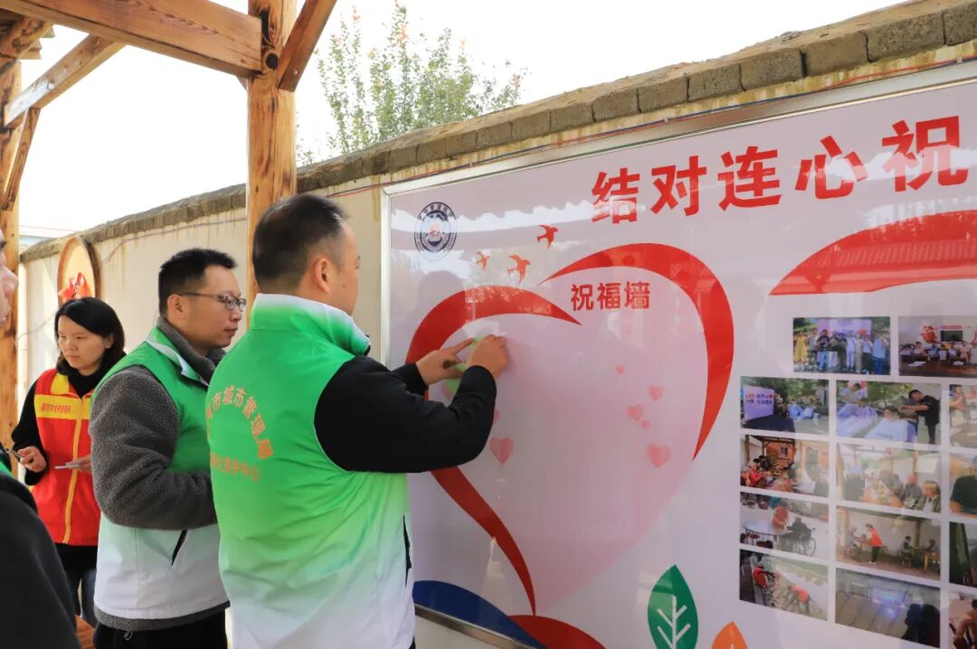 “駐村不僅是駐在村里,更要駐進(jìn)老百姓心里,把溫暖送到村民心坎上。”駐村第一書記趙基元站在“結(jié)對(duì)連心祝福墻”旁道出活動(dòng)初衷,身后的墻上,他與志愿者們寫下一張張心愿卡片:“愿潘牛村愈發(fā)美麗,村民們健康長(zhǎng)壽”。