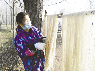 張夢菊的兒媳婦正在整理晾曬的粉條。 記者 張曉甫 攝