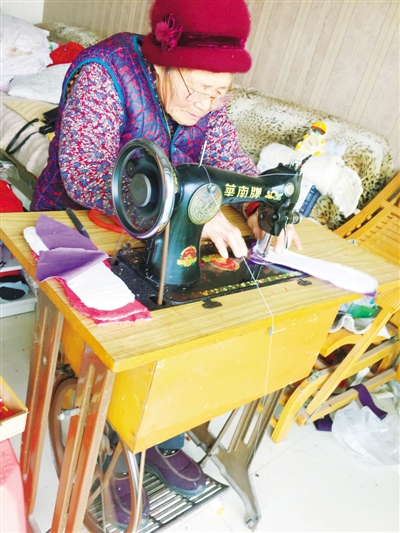 黃景蓮家里有兩臺縫紉機(jī),一臺是她自己的,另一臺是她女兒結(jié)婚時買給女兒的陪嫁。黃景蓮笑著告訴記者,她女兒對手工活并不怎么熱乎,一直都是她在使用。