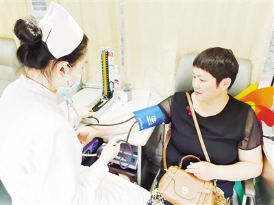 休息半小時血壓平穩(wěn)后,張冬梅為喬女士獻血400毫升。