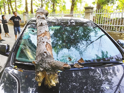 “好好的車停在樓下,被枯樹斷枝砸中,真倒霉啊!”車主王先生說,發(fā)現(xiàn)車是被院墻外的枯樹砸傷,他就趕緊聯(lián)系了小區(qū)物業(yè)。