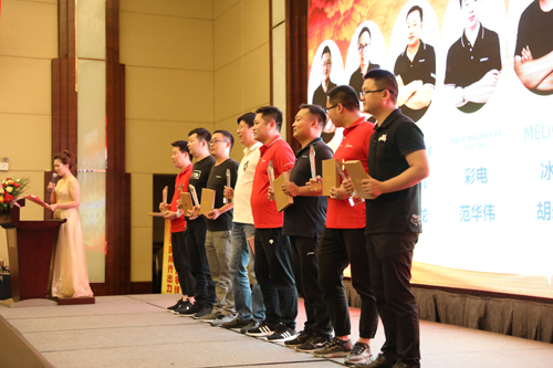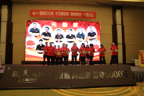 從2006年11月豫南國美第一家門店——國美新天地店在漯河正式開業(yè),發(fā)展到今日,豫南國美已經(jīng)走過了13個(gè)年頭,壯大到39家門店,團(tuán)隊(duì)也從幾十人發(fā)展到900多人。13年的歷程,不少人親眼見證了豫南國美一步一個(gè)腳印的成長,在慶典活動(dòng)中,對(duì)為豫南國美做出貢獻(xiàn)的資深老員工、在工作崗位長期默默奉獻(xiàn)的員工和一些長期與豫南國美合作的廠家業(yè)務(wù)精英進(jìn)行了表彰。