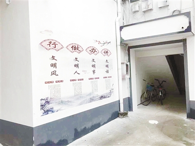 小區(qū)內(nèi)墻面進(jìn)行了粉刷,并寫上了文明標(biāo)語(yǔ)。