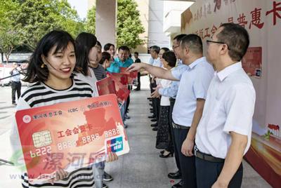 2019年9月9日,漯河市總工會(huì)攜手中國(guó)工商銀行漯河分行、鄭州銀行漯河分行、漯河市公交集團(tuán)等單位共同舉行新版工會(huì)普惠卡啟動(dòng)儀式。漯河市人大副主任、市總工會(huì)主席陳平;省工行王愛軍專家、楊景勝總經(jīng)理、工行漯河分行王齊鋒行長(zhǎng)、鄧超副行長(zhǎng);鄭州銀行漯河分行韓寶平行長(zhǎng);各縣區(qū)總工會(huì)分管保障及工會(huì)惠普卡業(yè)務(wù)的分管主席、部長(zhǎng)同志;市直局委工會(huì)和住漯基層工會(huì)負(fù)責(zé)同志;雙匯集團(tuán)、銀鴿集團(tuán)、3515公司職工代表;工商銀行、鄭州銀行分支機(jī)構(gòu)負(fù)責(zé)同志;公交集團(tuán)車長(zhǎng)代表和普惠商家代表、新聞媒體朋友200多人參加啟動(dòng)儀式。
