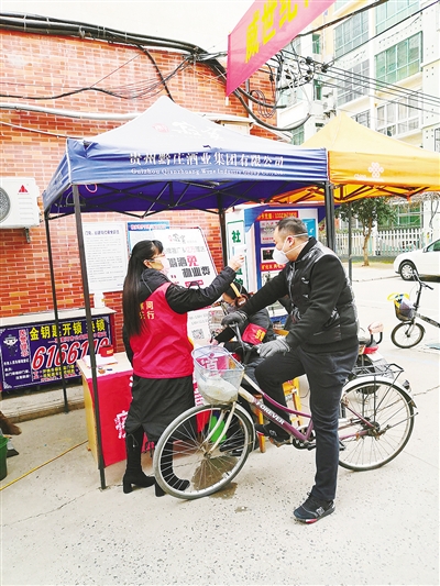 近日,郾城區(qū)沙北街道泰山社區(qū)發(fā)布防疫志愿者招募令,短時間內(nèi),有45名志愿者積極報名。據(jù)社區(qū)負責人趙保偉介紹,泰山社區(qū)共有28個無主管小區(qū),2個專業(yè)小區(qū),常住居民1.43萬人,共設(shè)立7個卡點。圖為志愿者為社區(qū)居民測量體溫。記者 吳艷敏 攝