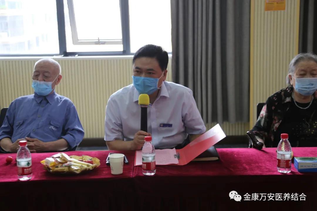 院長(zhǎng)王衛(wèi)峰代表金康萬安醫(yī)養(yǎng)健康產(chǎn)業(yè)集團(tuán)向在座的老中青三代黨員、向奮戰(zhàn)在醫(yī)療養(yǎng)老、健康管理事業(yè)上的各位同事表示節(jié)日的祝賀和親切的問候!黨員要以自身為表率,堅(jiān)持弘揚(yáng)“孝慈仁善”的企業(yè)文化,堅(jiān)持醫(yī)療扶貧和慈善事業(yè),堅(jiān)持學(xué)習(xí),不斷提升自身技能水平,為廣大群眾提供更高水平、更優(yōu)質(zhì)的服務(wù)!
