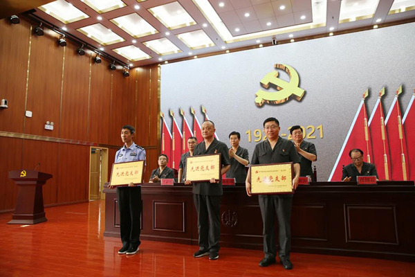 陳松林率領(lǐng)班子成員、全體干警一同齊唱國歌。大會(huì)表彰了李漢升等16名優(yōu)秀共產(chǎn)黨員,孟哲昱等6名優(yōu)秀黨務(wù)工作者和3個(gè)先進(jìn)黨支部。