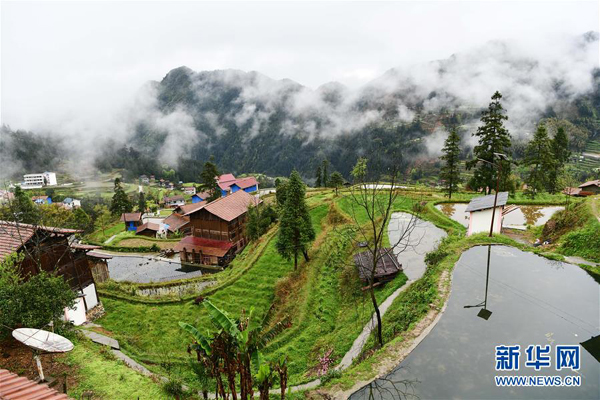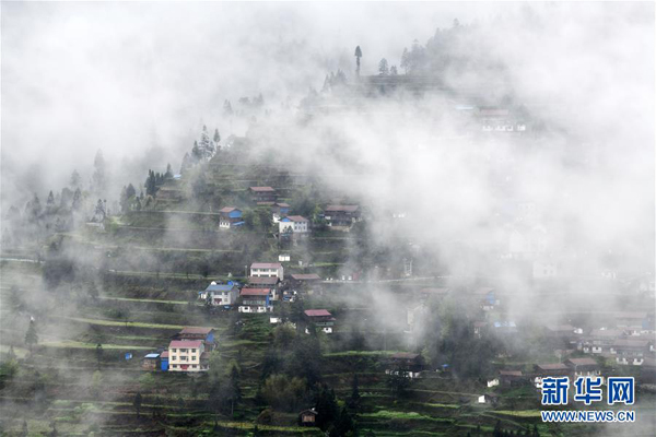 當日,在貴州省黔東南苗族侗族自治州,一場春雨過后,村莊、山川、田野在薄霧中若隱若現(xiàn),美若畫卷。