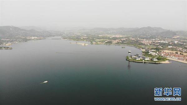 這是5月17日拍攝的雪野湖景色(無人機照片)。 山東濟南風景區(qū)——雪野湖波光粼粼,岸邊綠樹環(huán)抱,加上星星點點的帆船在湖面搖曳,景色宜人。 新華社記者王凱攝