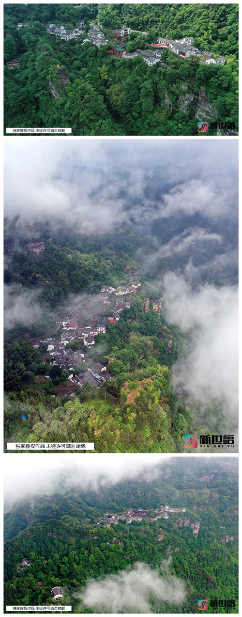 鏡頭鳥瞰安徽齊云山月華天街 云遮霧繞宛若仙境