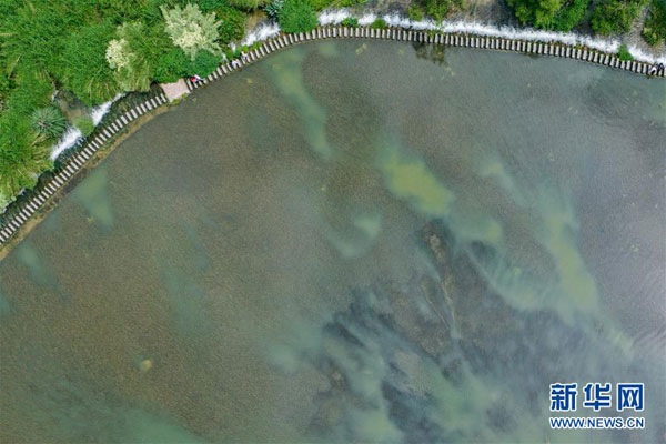 6月9日,游人在貴陽市天河潭旅游度假區(qū)游玩(無人機照片)。 夏日的貴陽市天河潭旅游度假區(qū)草木蒼翠,風(fēng)景如畫,吸引游客來此休閑游玩。 新華社記者 歐東衢 攝