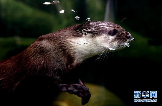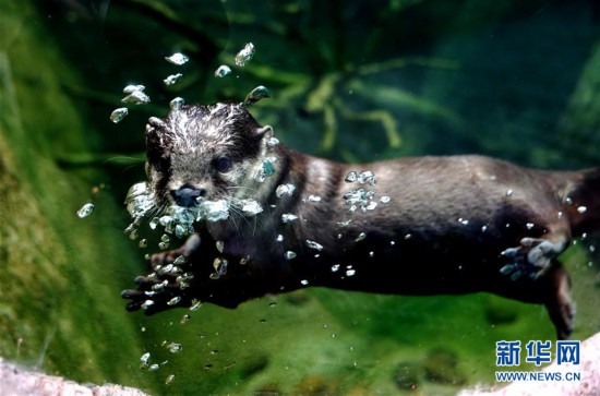 6月10日在上海動物園拍攝的小爪水獺。 新華社記者 張建松 攝