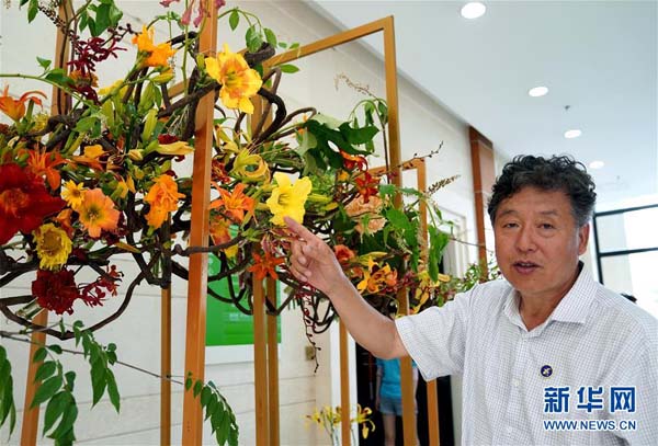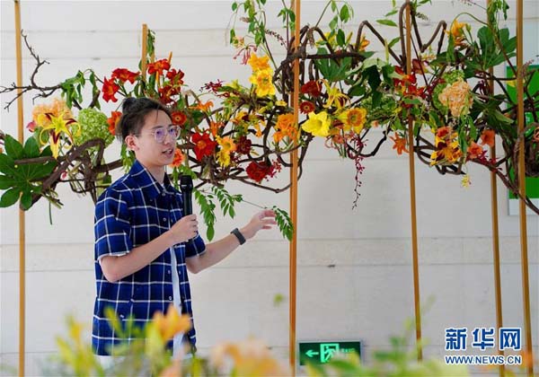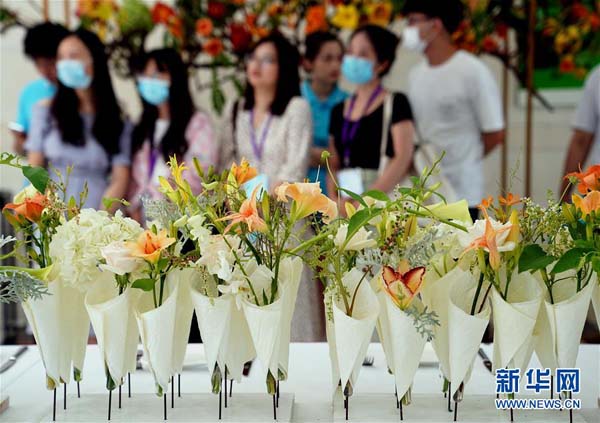 6月13日,上海應用技術大學的學生們設計創(chuàng)作的萱草花藝作品即將在開幕式現(xiàn)場亮相。 當日,“2020中國(上海)萱草文化節(jié)”在上海應用技術大學開幕,校園里數(shù)百個品種的萱草花競相綻放,萱草科研推廣、萱草文化交流等多項活動同時舉行。 新華社記者劉穎攝