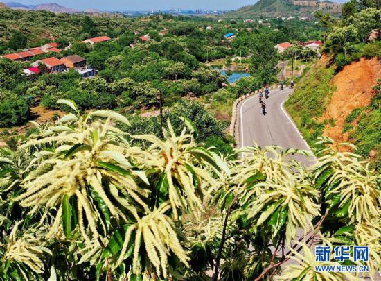 6月10日,騎行愛好者在河北省遷安市大五里鄉(xiāng)板栗林里騎行。 近日,河北省遷安市栗花進入盛花期。遷安市板栗栽培歷史悠久,現(xiàn)有種植面積11萬畝,是帶動當?shù)剞r(nóng)民增收的特色產(chǎn)業(yè)。 新華社記者 牟宇 攝