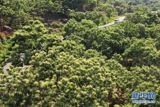 6月10日,騎行愛好者在河北省遷安市大五里鄉(xiāng)板栗林里騎行(無人機照片)。 近日,河北省遷安市栗花進入盛花期。遷安市板栗栽培歷史悠久,現(xiàn)有種植面積11萬畝,是帶動當?shù)剞r(nóng)民增收的特色產(chǎn)業(yè)。 新華社記者 牟宇 攝