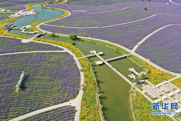 這是7月12日拍攝的甘肅省金昌市紫金苑景區(qū)(無人機(jī)照片)。 甘肅省金昌市是我國最大的鎳鈷生產(chǎn)基地,有“鎳都”之稱。近年來,金昌市大力推進(jìn)花園城市建設(shè),利用當(dāng)?shù)貢円箿夭畲?、光照充足等自然條件,引種花卉,讓這座地處戈壁的工業(yè)城成為掩映在花海中的田園花城。 新華社發(fā)(杜哲宇 攝)