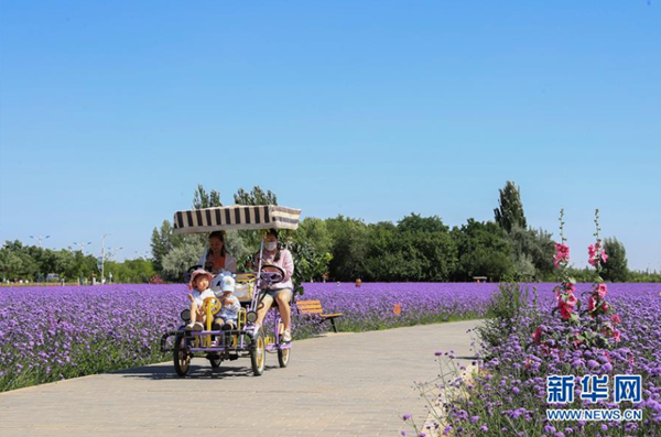7月12日,市民在甘肅省金昌市紫金苑景區(qū)游玩。 甘肅省金昌市是我國最大的鎳鈷生產(chǎn)基地,有“鎳都”之稱。近年來,金昌市大力推進(jìn)花園城市建設(shè),利用當(dāng)?shù)貢円箿夭畲?、光照充足等自然條件,引種花卉,讓這座地處戈壁的工業(yè)城成為掩映在花海中的田園花城。 新華社發(fā)(杜哲宇 攝)