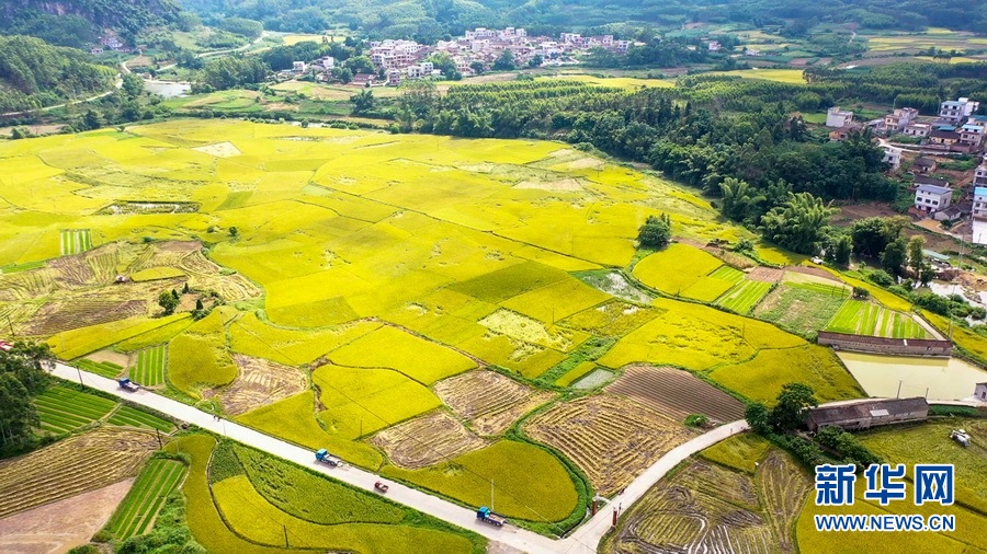 近日,在廣西柳州市魚峰區(qū)里雍鎮(zhèn)龍江村,各種農用機械開進場,拉開了早稻收割的序幕。一眼望去,成片的早稻在陽光下金燦燦一片,當?shù)剞r民抓緊晴好天氣收獲歸倉。