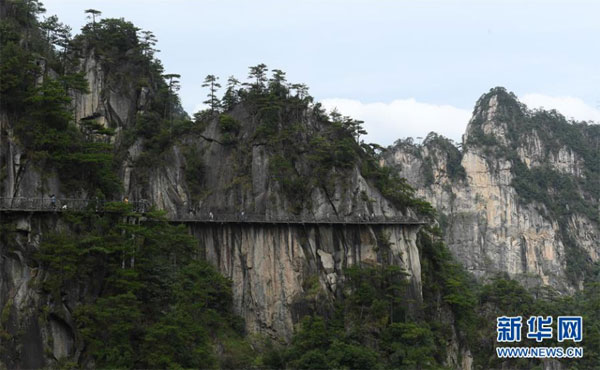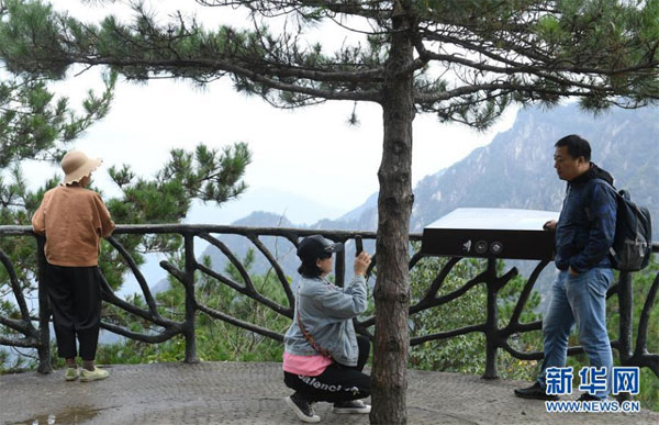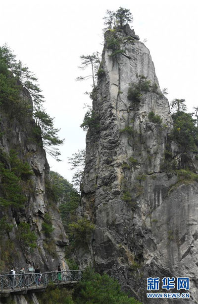 10月6日,游客在臨安區(qū)清涼峰游玩。 中秋和國慶假期,不少游客來到浙江杭州臨安區(qū)的山間游玩,和大自然親密接觸。 新華社記者 翁忻旸 攝
