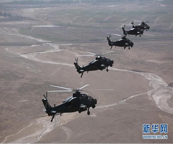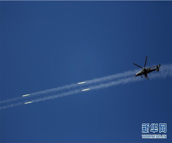 西部戰(zhàn)區(qū)陸軍第77集團(tuán)軍某陸航旅組織武裝直升機(jī)赴高原地區(qū)展開(kāi)實(shí)彈射擊訓(xùn)練(2017年9月27日攝)。新華社發(fā)(傅磊 攝)