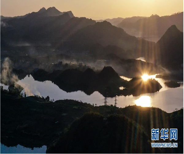 11月10日拍攝的貴陽市阿哈湖國家濕地公園(無人機(jī)照片)。 初冬時節(jié),貴州省貴陽市阿哈湖國家濕地公園色彩斑斕,景色怡人。 新華社記者 歐東衢 攝