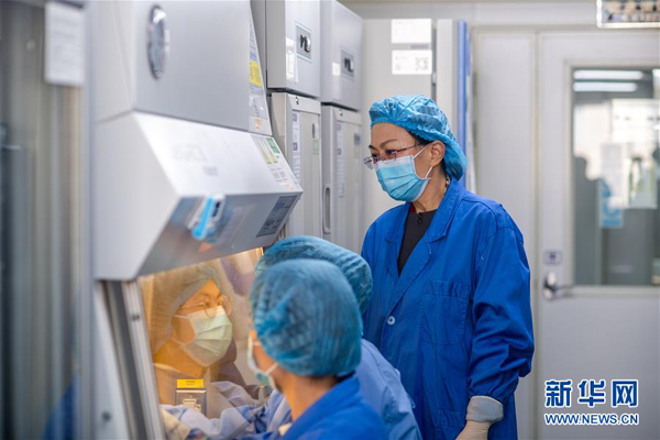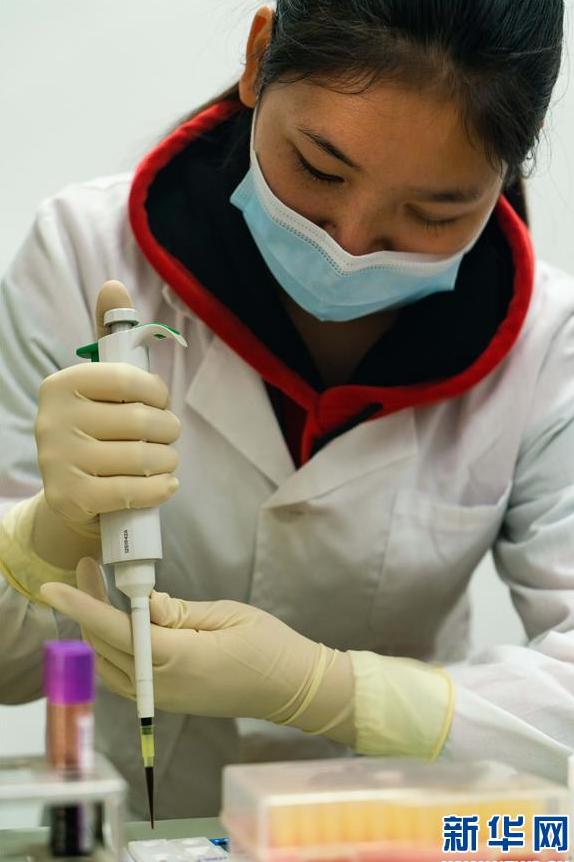 11月25日,云南省艾滋病專家咨詢委員會副主任委員賈曼紅(右)在指導(dǎo)工作人員進(jìn)行實(shí)驗(yàn)。 新華社記者 胡超 攝