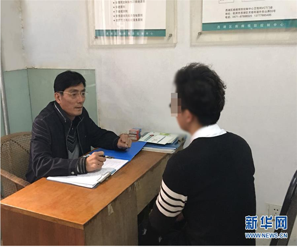 劉建寧在杭州市西湖區(qū)疾病預(yù)防控制中心自愿咨詢檢測室接受咨詢(資料照片)。 新華社發(fā)