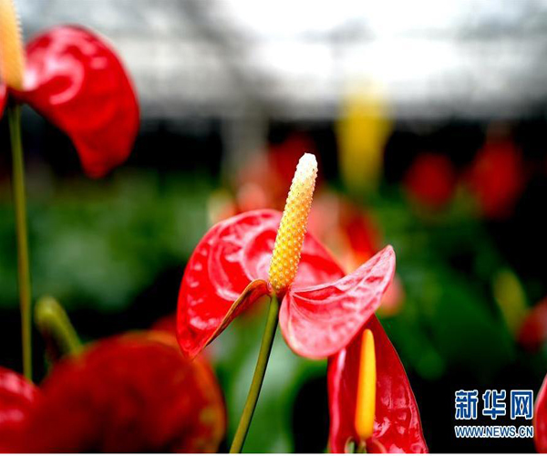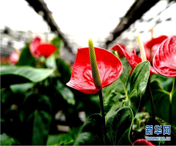 1月21日,在上海鮮花港拍攝的紅掌新品種“紅裝”。 近日,上海鮮花港自主研發(fā)的兩個(gè)紅掌新品種“紅胭”“紅裝”獲得國(guó)家植物新品種授權(quán)。目前,上海鮮花港已建成紅掌品種資源圃,收集保存紅掌品種達(dá)100多個(gè)。 新華社記者 張建松 攝