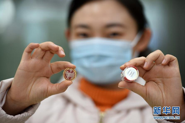 1月29日在杭州拍攝的紀(jì)念幣。當(dāng)日,中國人民銀行發(fā)行的2021年賀歲普通紀(jì)念幣開始兌換。