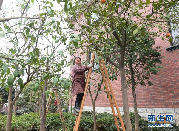 3月10日,后溪河村村民何秋芳在自家院子里修剪待售的柚子樹。
