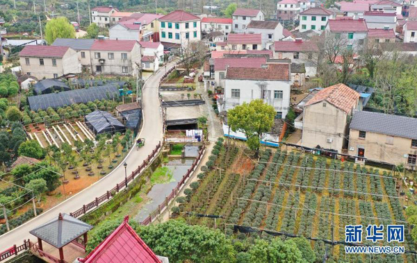 后溪河村村民房前屋后花木環(huán)繞(3月10日攝,無(wú)人機(jī)照片)。