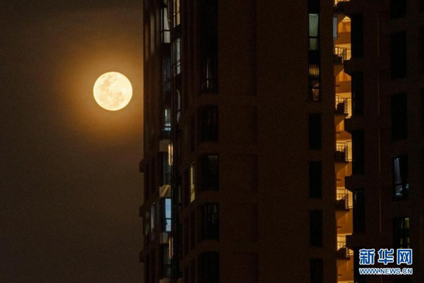 4月27日,“超級月亮”出現(xiàn)在新加坡城市的天空。