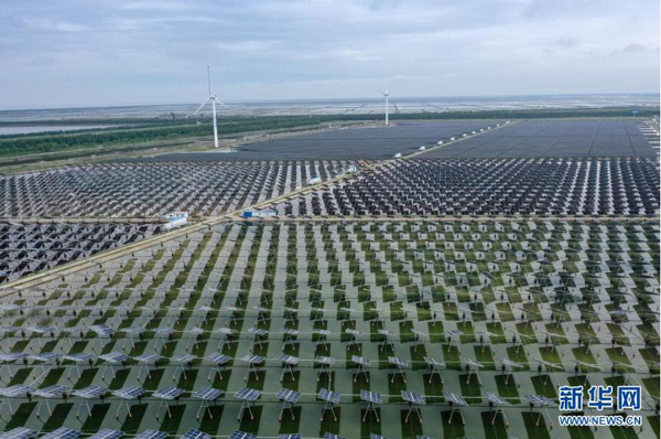 在江蘇省東臺市沿海灘涂綜合開發(fā)示范區(qū),集風(fēng)力發(fā)電、光伏發(fā)電、水面養(yǎng)殖為一體的“風(fēng)光漁”立體開發(fā)模式正在形成,實(shí)現(xiàn)灘涂資源的高效利用與生態(tài)開發(fā)。