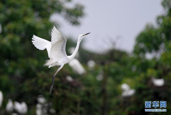 白鷺在南昌市新建區(qū)象山森林公園內(nèi)飛翔(5月18日攝)。