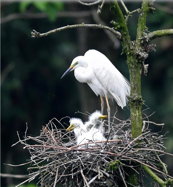 在南昌市新建區(qū)象山森林公園內(nèi),白鷺和雛鳥們?cè)谝黄穑?月18日攝)。